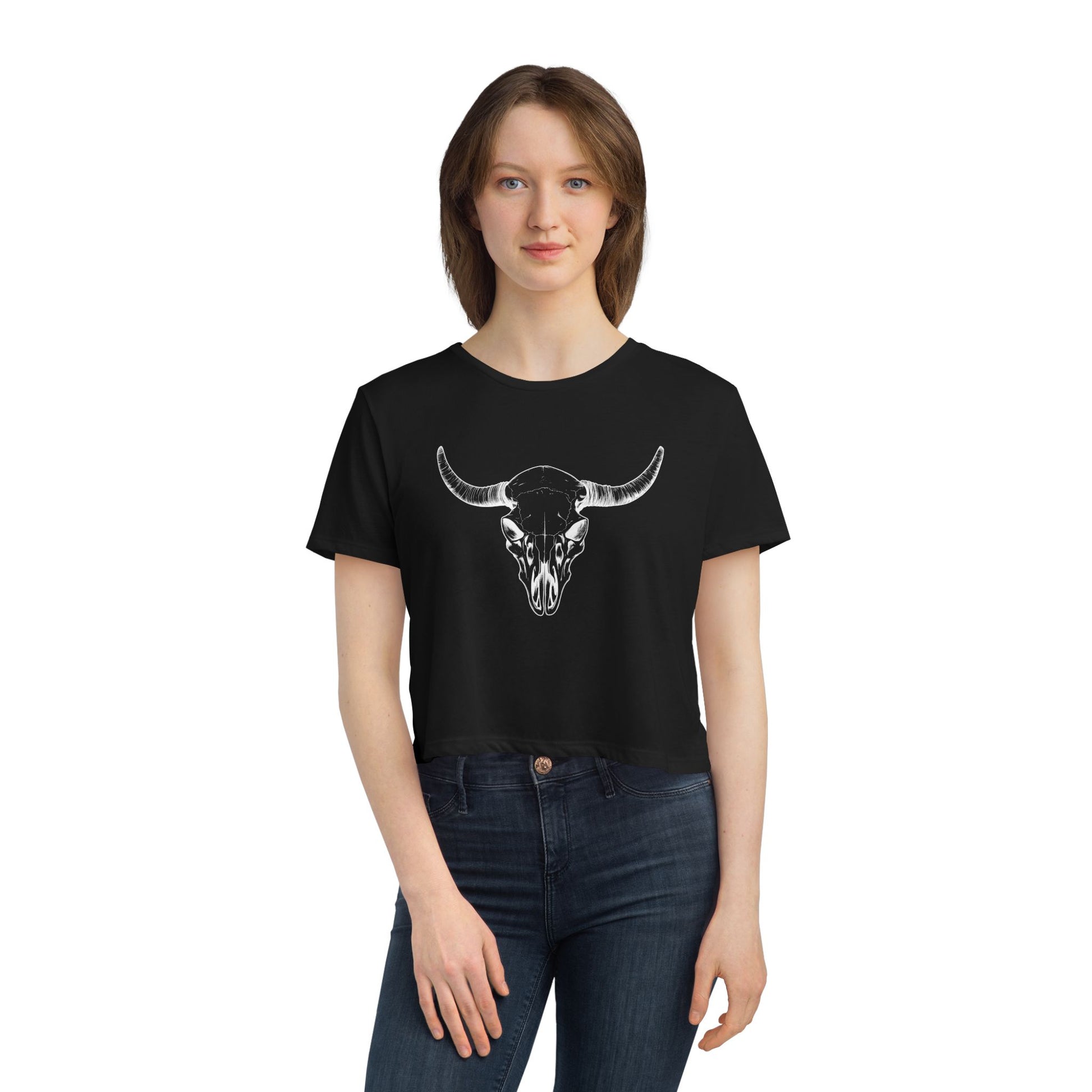 This bull horn skull top is made with a flowy fit and tailored sleeves, and is designed to flatter your figure and keep you comfortable all day long. The 65% polyester/35% viscose fabric blend provides stretchiness for a great fit, and the tear-away label ensures a scratch-free experience. Available in a light fabric and modest crop style, this tee is the perfect choice.