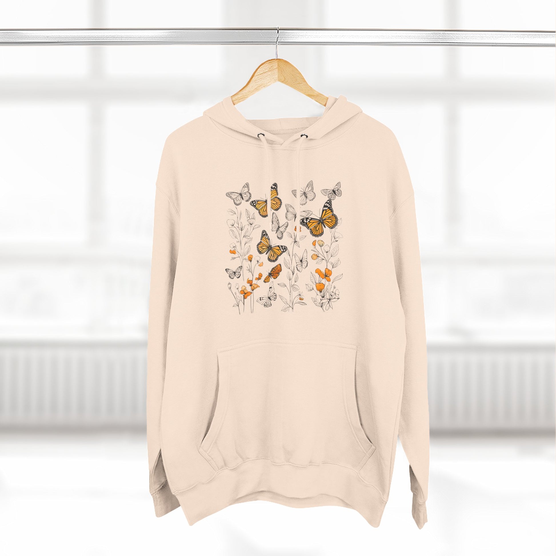 Our soft and comfortable pullover hoodies are the perfect option to keep you warm. Crafted with two-panel fleece lining and double stitching for strength, its fabric provides a luxuriously comfortable feel. It features an 80%-cotton, 20%-polyester fabric blend, a tear-away label for added comfort, and a regular fit that runs true to size. Featuring a beautiful illustrated butterfly scene with artistic floral elements, this hoodie is sure to become a well loved favorite.