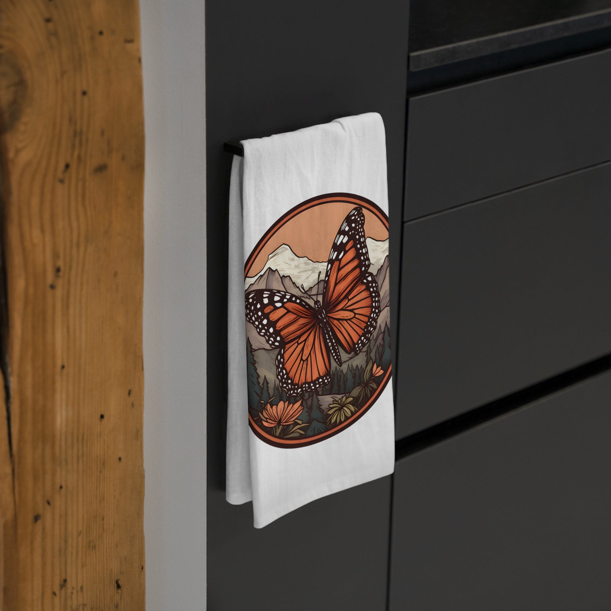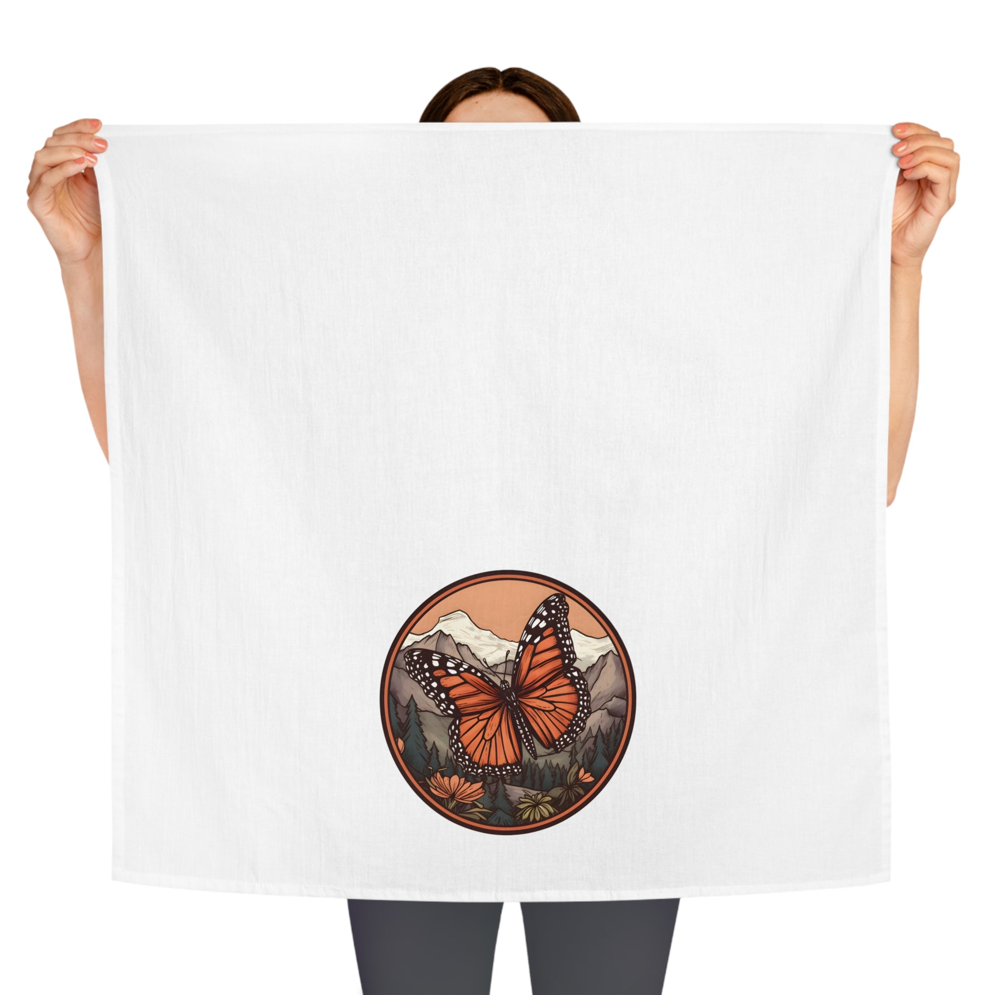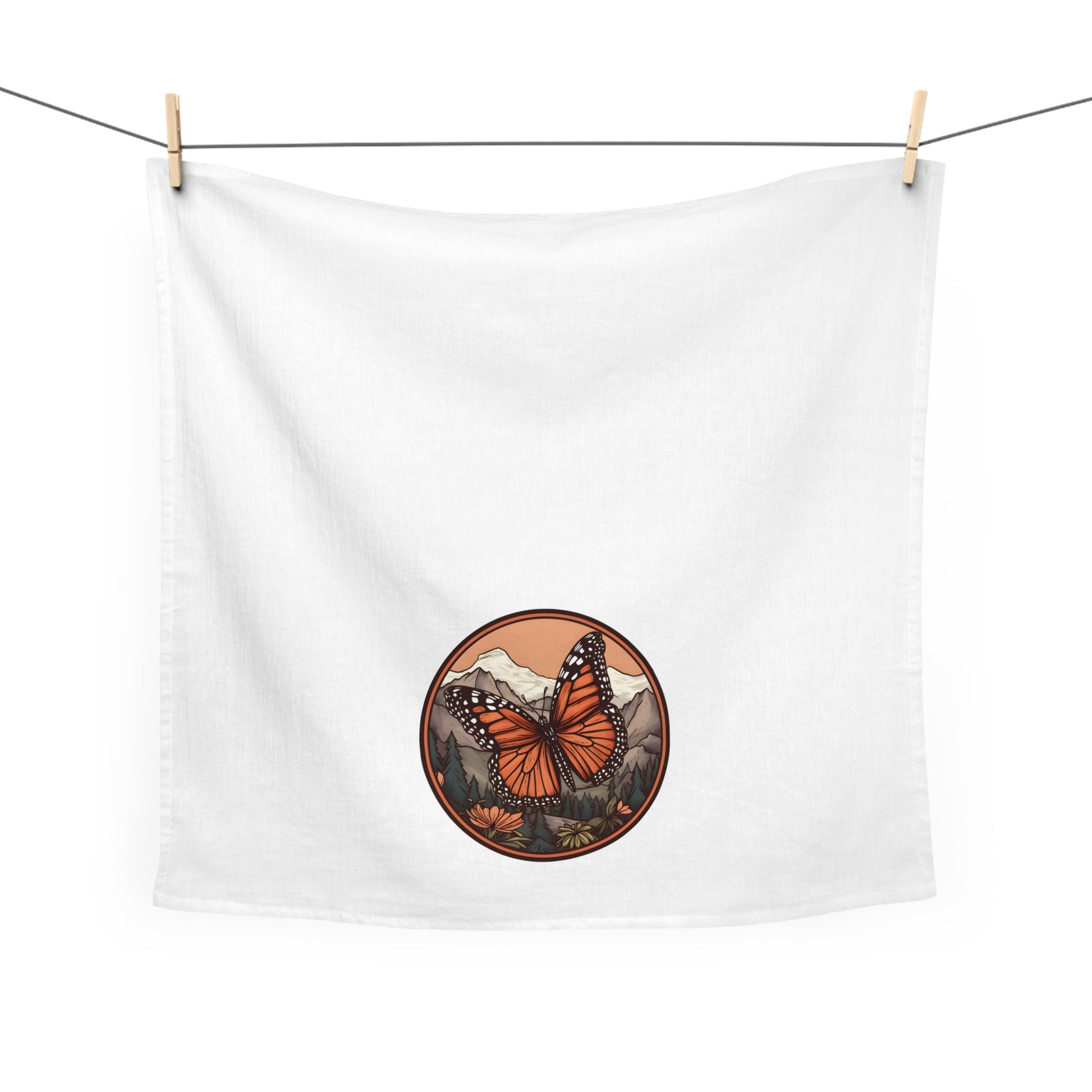 Add a charming touch to your kitchen with our monarch butterfly tea towel. Made from 100% cotton, this tea towel is not only super soft but also highly absorbent, allowing for quick drying. Its durable sewn edges and printed design strike the perfect balance between functionality and style. Measuring 28" × 28", this towel adds a bit of nature to your kitchen with a beautiful monarch butterfly graphic. Practical and long-lasting, this tea towel is a must-have for any kitchen enthusiast.